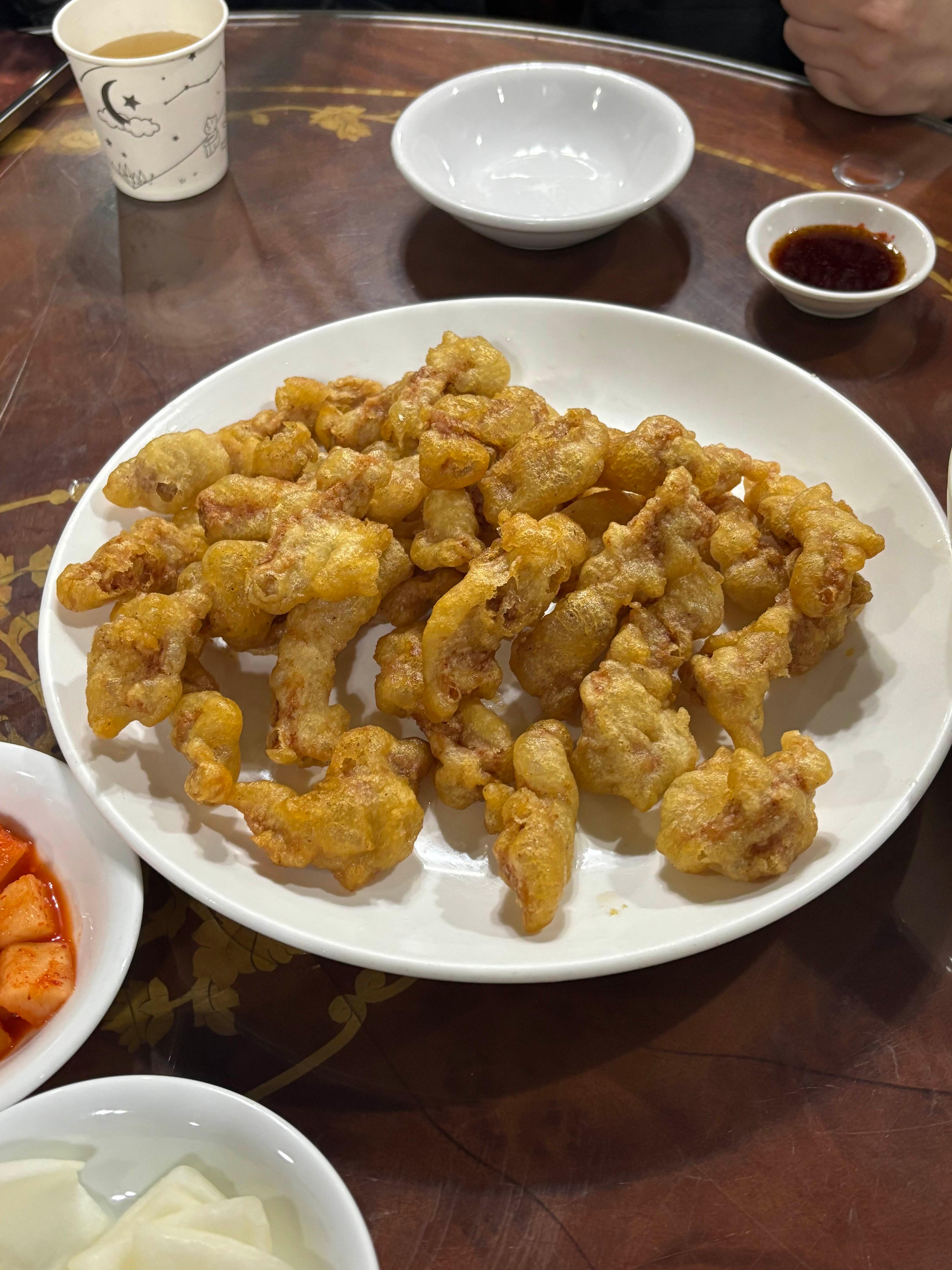 겉은 바삭 속은 촉촉하고 고기는 잡내없이 부드러웠어요달짝지근한 탕수육 소스에 찍어먹으면 세상 녹아요